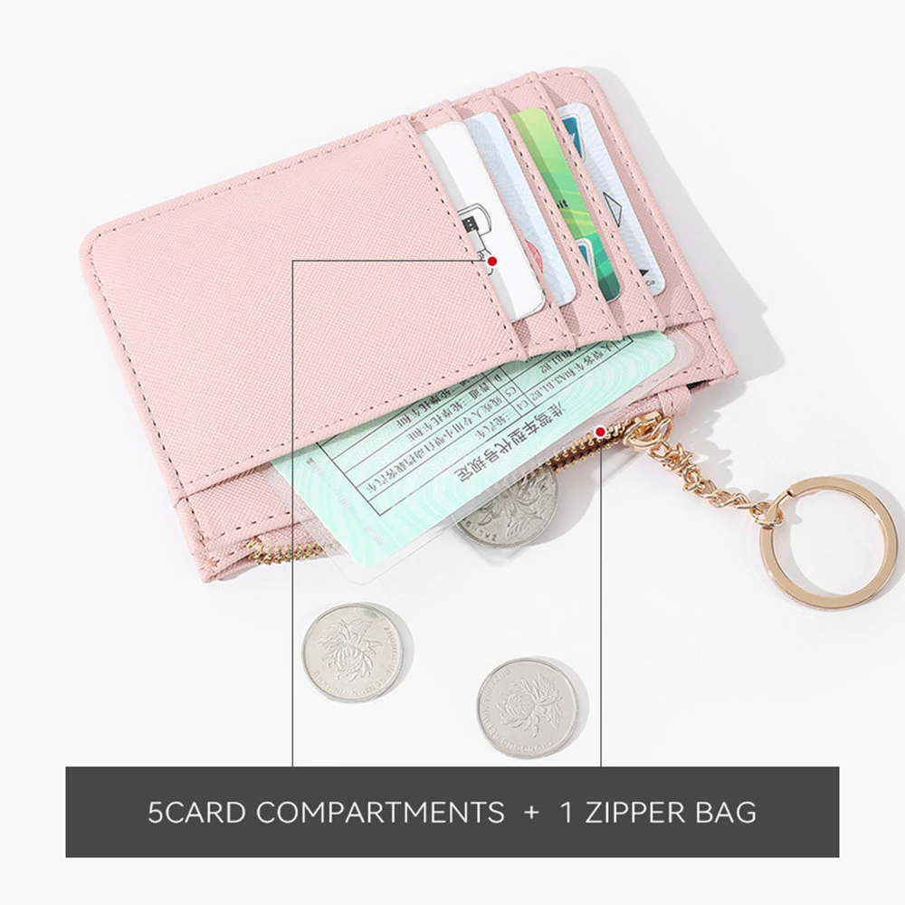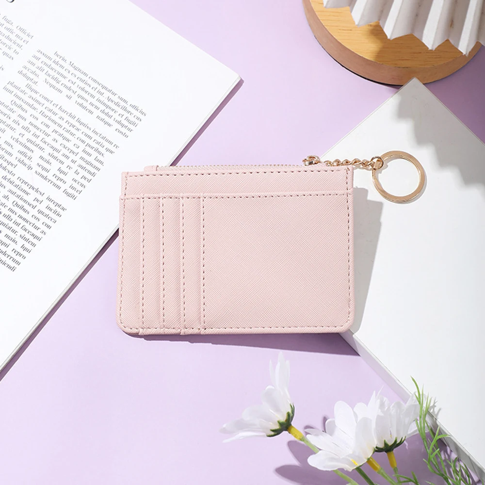 personalized 1pc saffiano PU leather zipper women's coin purse wallet with key ring Korean version mini keychain small wallet with multiple card slots customized ladies card sleeve card bag